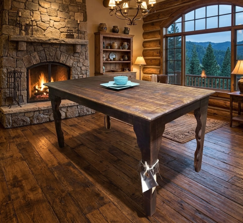 The Cabana 5 Ft Dining Table is Rustic with an Island flare inspired by the beach towns in the Western Caribbean. It features a Rustic distressed finish and a decorative scalloped design on the legs. Available in many colors,