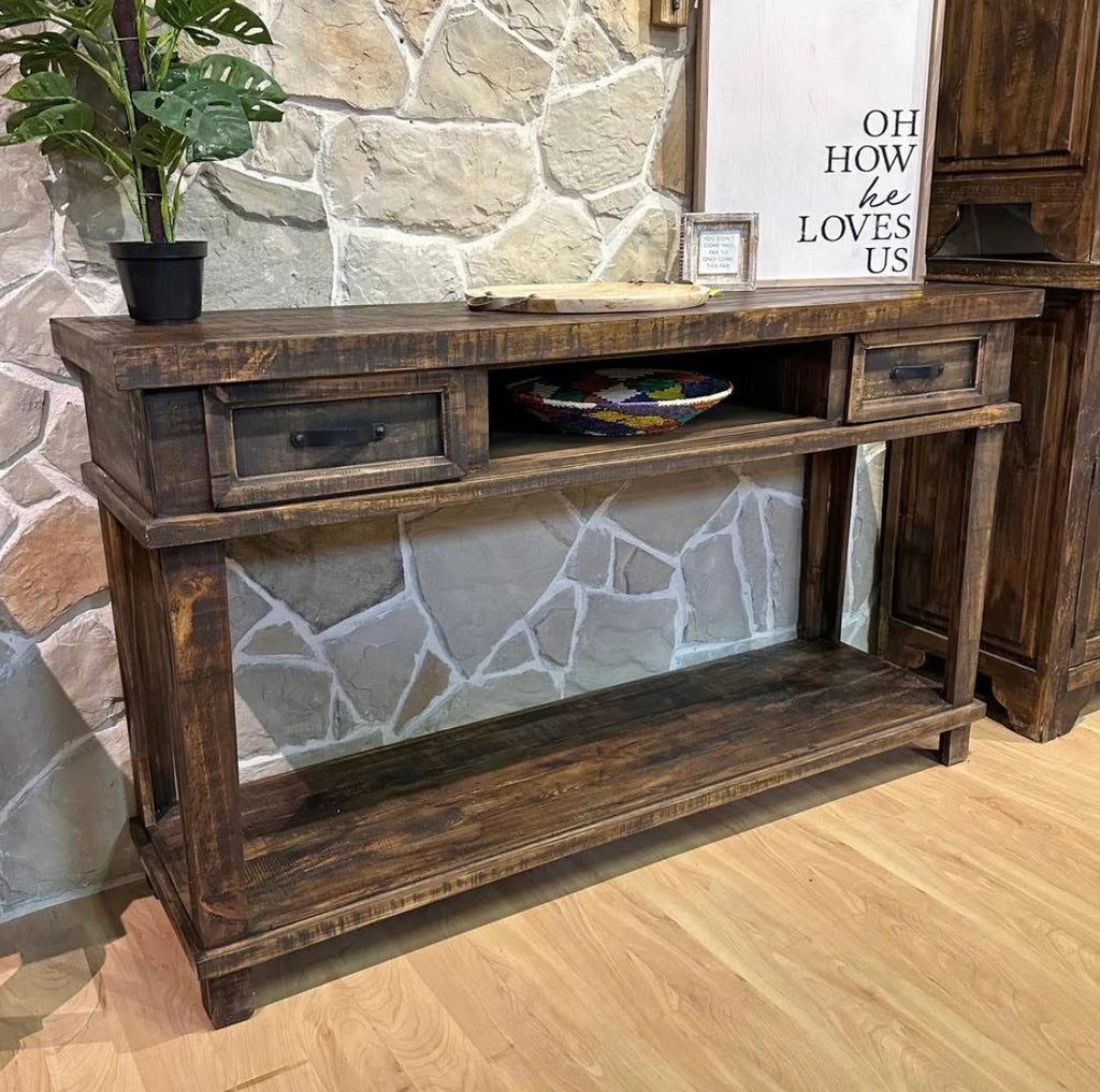 RUSTIC CANYON 2 DRAWER SOFA TABLE DARK