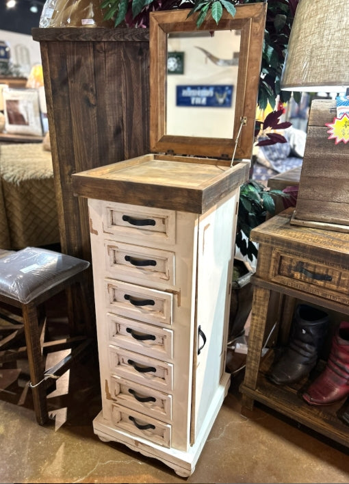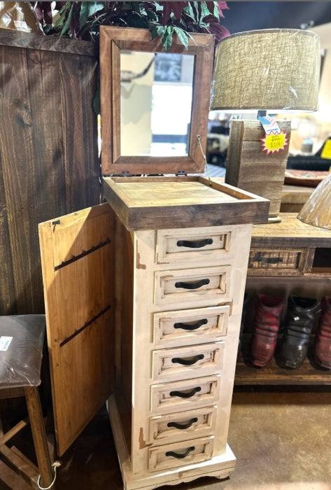 Organize your jewelry collection with the Rustic Canyon Lingerie Jewelry Chest! This charming chest features a necklace holder and drawers for easy storage and organization. Perfect for adding a touch of rustic elegance to your bedroom.