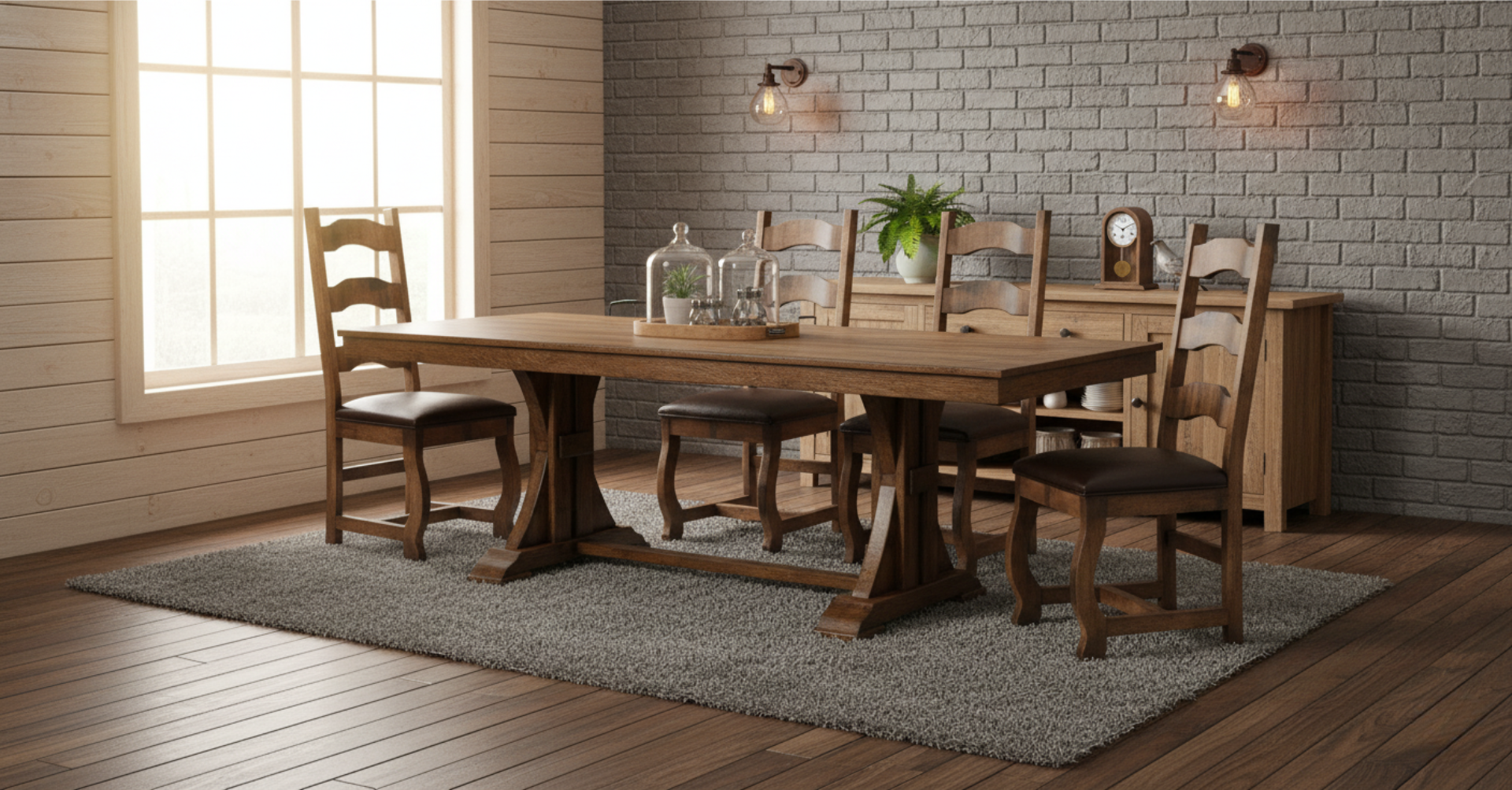 Transform your dining area into a charming rustic retreat with our FLORESVILLE 6 ft dining set. Embrace the warmth and character of country living with its sleek design. Enhance your dining experience with this must-have addition to your home!
