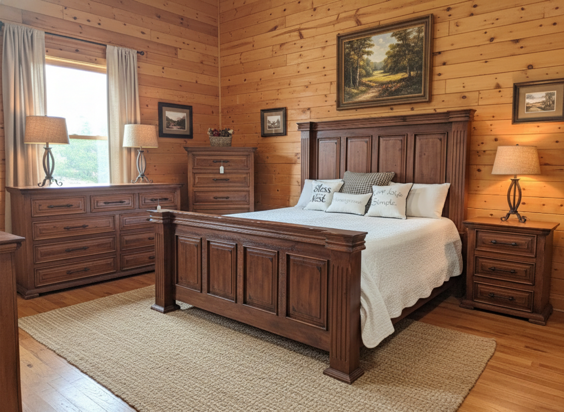 Featuring a rich & golden hue that adds elegance to any space. Inspired by transitional Rustic design, it showcases the effortless sophistication of clean, sturdy shapes and molded panels while beautifully highlighting the grain of solid wood. This collection represents a welcome blend of Rustic and traditional elements, making it a timeless addition to your home.