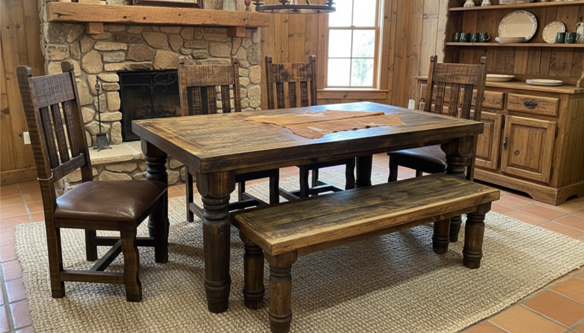 Experience the rustic elegance of the Rustic Canyon 6FT Dining Set in your home. Order yours today and enjoy the unique, one-of-a-kind look of this hand-crafted, solid wood dining set.