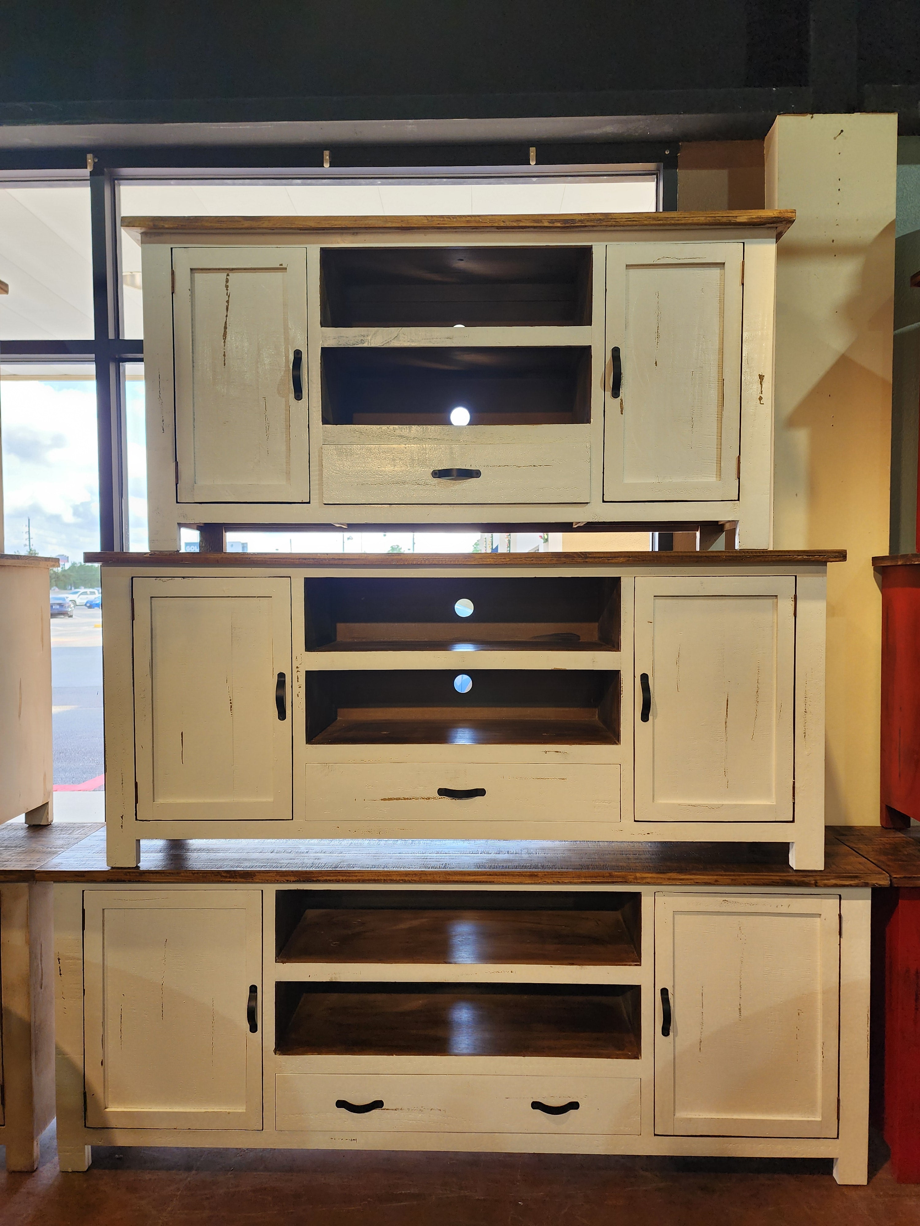 Rustic Canyon TV Console in White Distressed brings farmhouse charm to your living room. Built from solid wood in three sizes—60", 72", and 80"—this durable console features a convenient drawer and striking two-tone finish that complements any décor style.